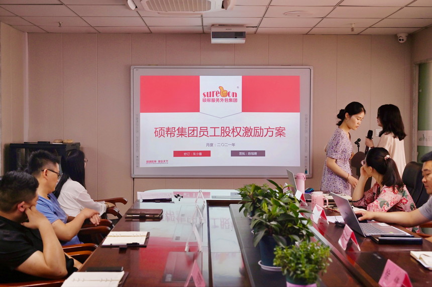 6月8日下午,硕帮集团召开了股权激励方案的动员大会,本次动员会议是公司的股权激励工作项目的第一步,是公司在转型升级的大背景下,以股权为核心,对优秀的经营者、核心骨干人员、优秀员工进行股权激励的说明和动员大会,也是公司治理和实施发展战略的开端。公司高层、中层领导和基层员工均出席会议,并作重要宣导和动员。